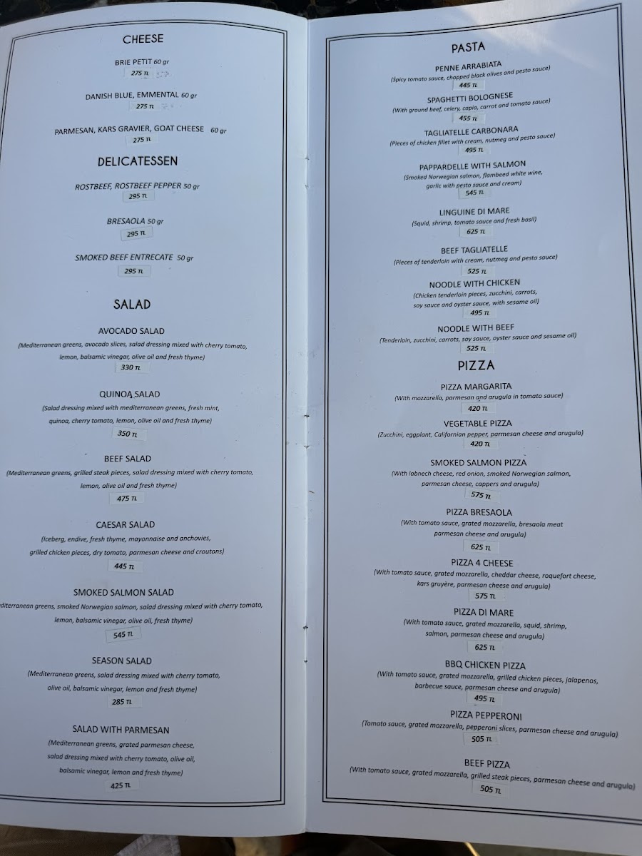 Highlights include a selection of popular appetizers like grilled octopus and fried calamaries, alongside international favorites such as pepperoni pizza and a classic cheeseburger. For those who prefer lighter options, dishes like the smoked salmon plate and Салат Цезарь provide a fresh contrast. The menu also features carefully chosen Turkish teas and coffees, complementing the peaceful atmosphere for a mid-day pause or a gentle close to your meal.